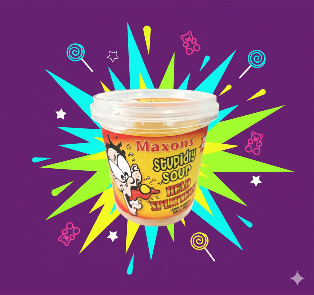 Maxons Stupidly Sour Headsplitters deliver an extreme, tongue-tingling sour blast made for serious sour candy fans. Every chewy piece hits with an intense, mouth-puckering punch that tests your limits and keeps you coming back for more. Perfect for snacking, sharing, or challenging your friends, these bold sour treats guarantee a fun and unforgettable candy experience. Get yours now while stocks last!